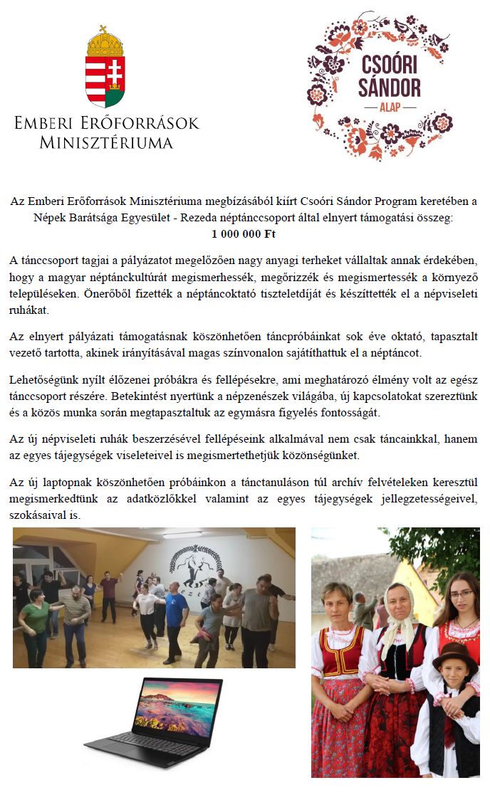 A Rezeda Néptánccsoport 2007 októberében alakult Himesházán, amatőr, de lelkes fiatal felnőttekből. Célunk a magyar néptánc kultúra megismerése, megőrzése, magas szinten való művelése és továbbadása.