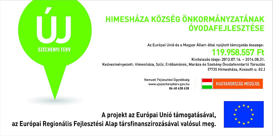 Himesháza Község Önkormányzata közel 120 millió forint vissza nem térítendő támogatást nyert el a "Nevelési intézmények fejlesztése" című pályázati kiíráson az Új Széchenyi Terv keretében.