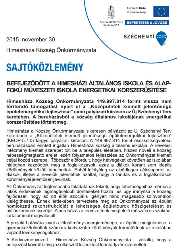 - 11:00-11:30 óráig hangszerbemutató lesz a zenetagozaton