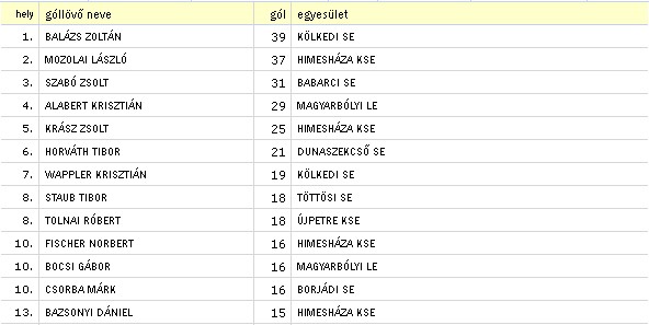 G: Kasper Zoltán 2 ill. Krász Zsolt 5, Mozolai László 3, Appl Zsolt