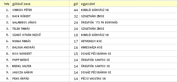 G: Lackó Attila, Kósa Gábor, Schmidt Norbert 2, Rigó Robertó