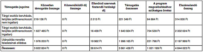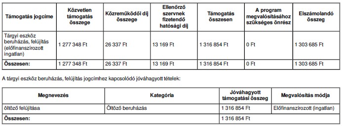 A tárgyi eszköz beruházás, felújítás jogcímhez kapcsolódó jóváhagyott tételek: