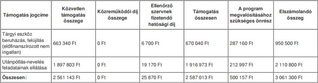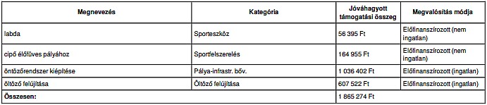 Himesháza Községi Sportegyesület sportfejlesztési programjának szakmai tartalmát, illetve annak költségvetését a Magyar Labdarúgó Szövetség az alábbi összegekben hagyta jóvá: