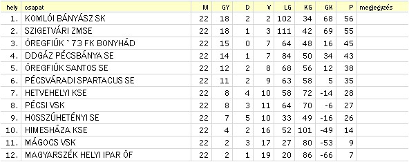 Őszi szezon után a tabella állása