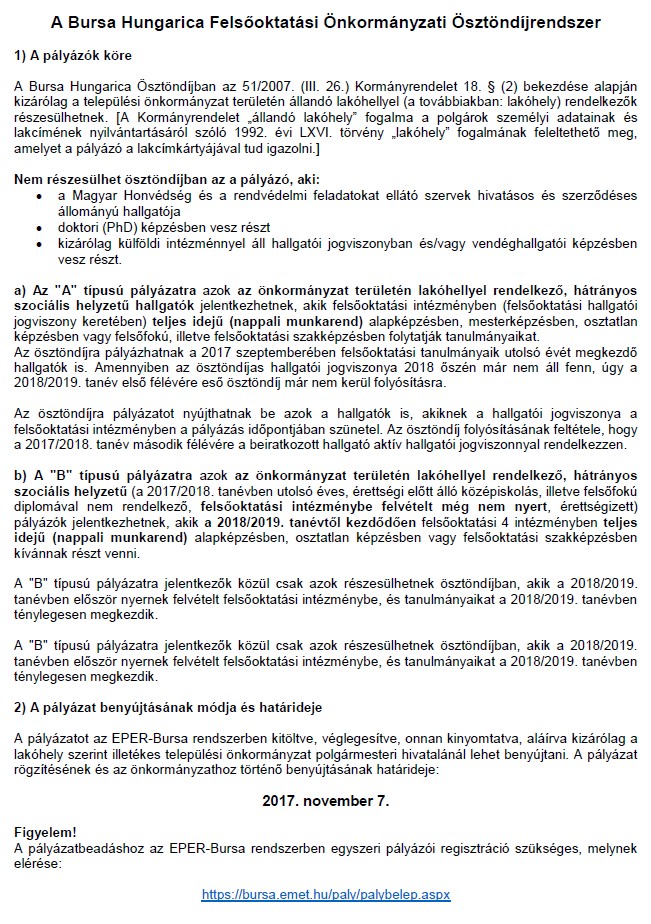 BURSA HUNGARICA 2017