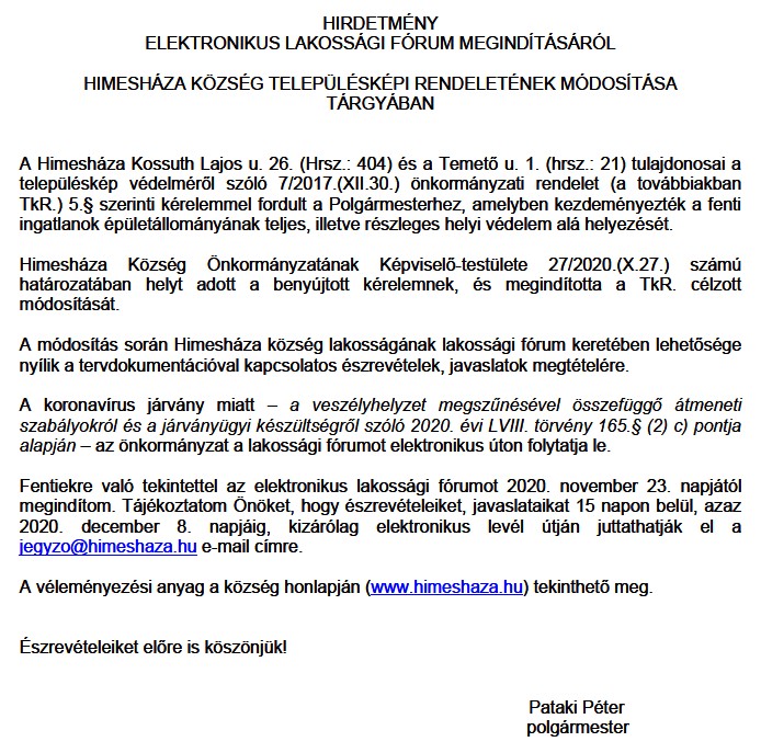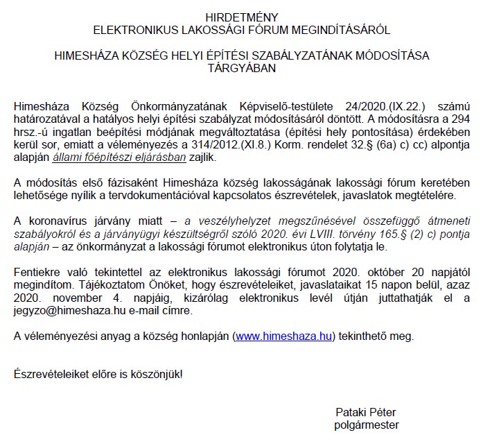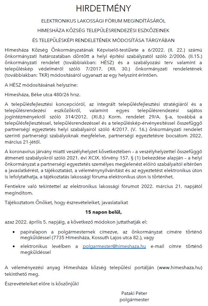 Himesháza TkR módosítás 2022 partnerségi egyeztetésre