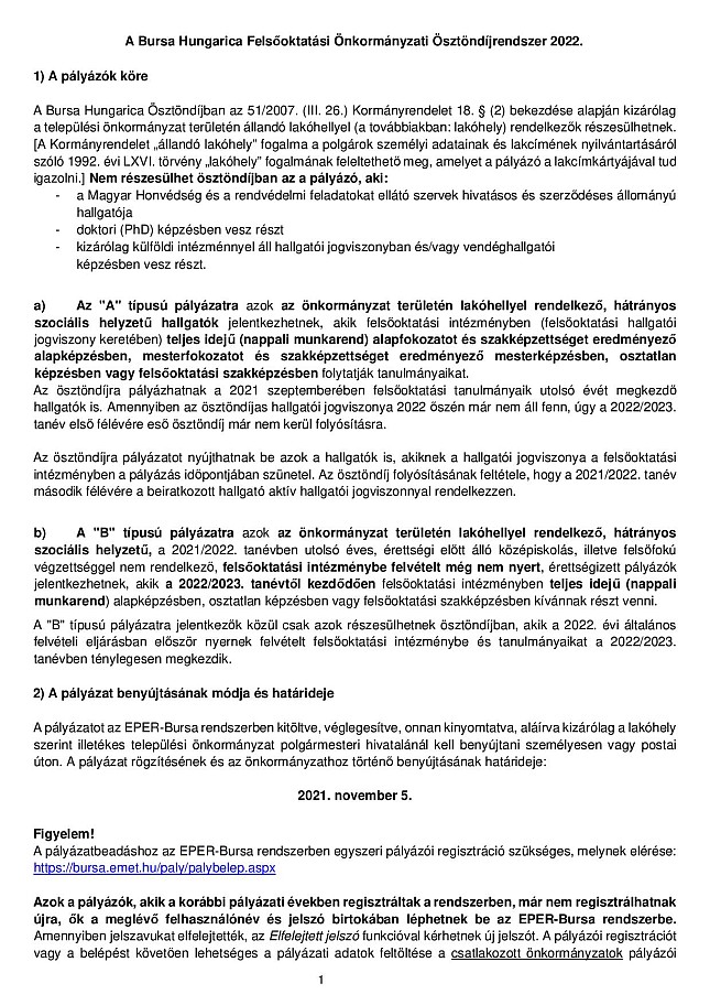 A KÉRELEM BENYÚJTÁSÁNAK HATÁRIDEJE: